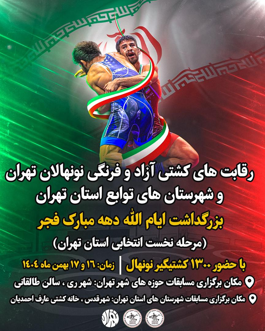 سالن طالقانی شهرری میزبانی مسابقات حوزههای شهر تهران را برعهده خواهد داشت و رقابتهای شهرستانهای تابعه تهران نیز در خانه کشتی عارف احمدیان شهرقدس برگزار میشود.