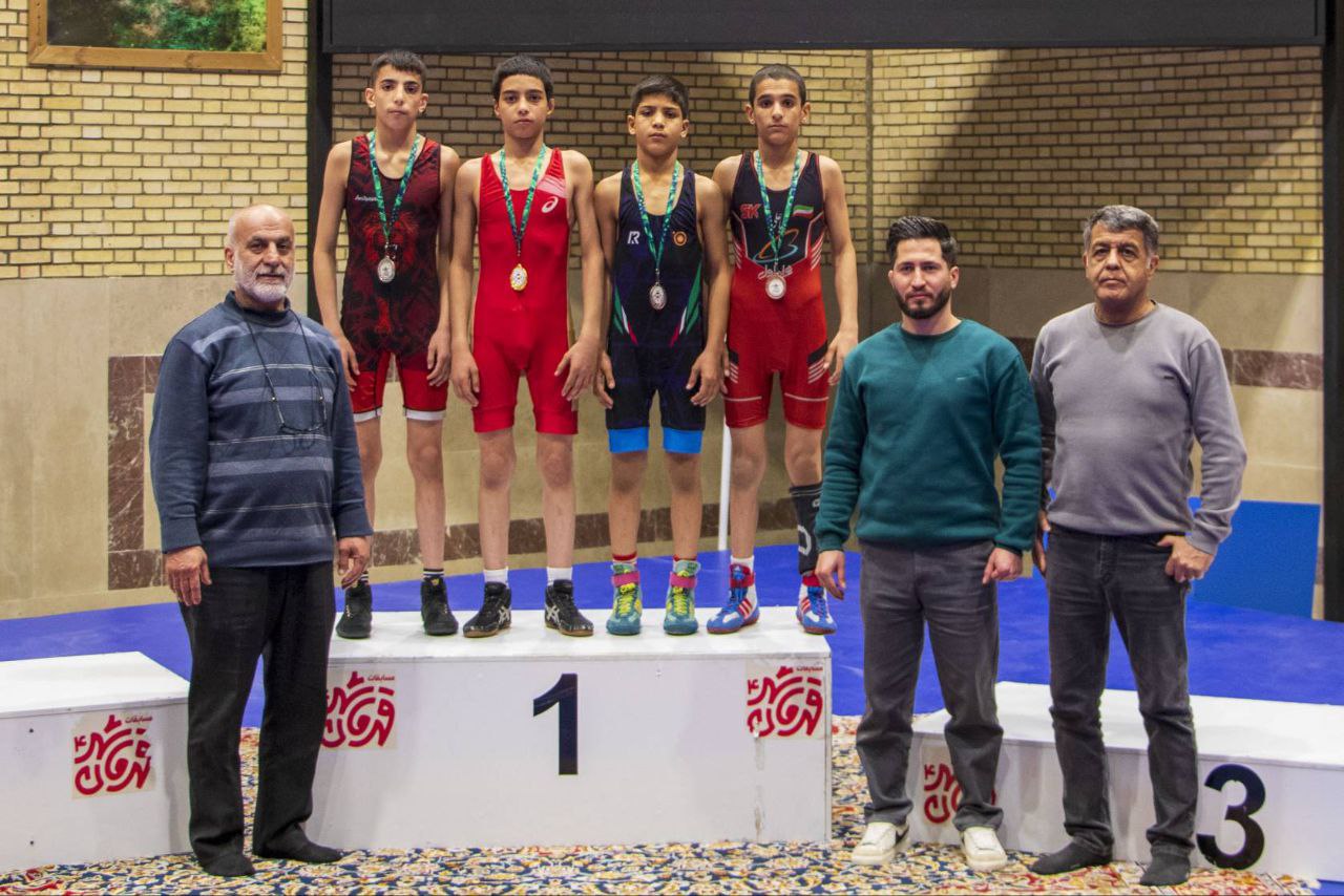 وزن 44 کیلو: 1-آرش انصاری (شهر قدس)، 2- محمدمتین توکلی (قرچک)، 3- سبحان قلیزاده (شهریار) و رسا ارشد (اسلامشهر)